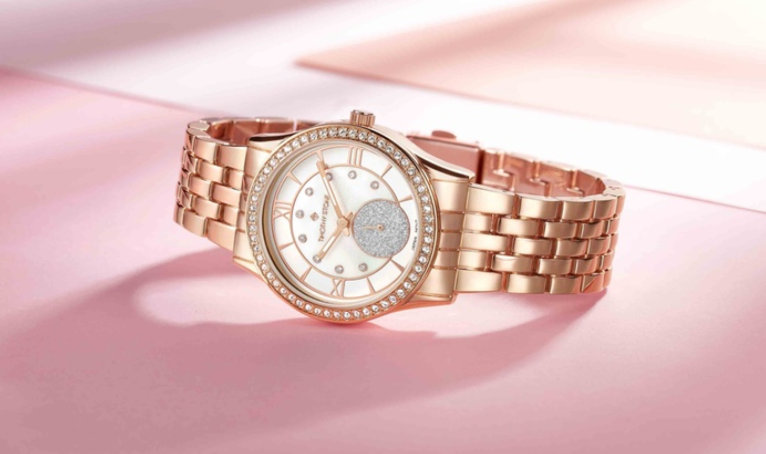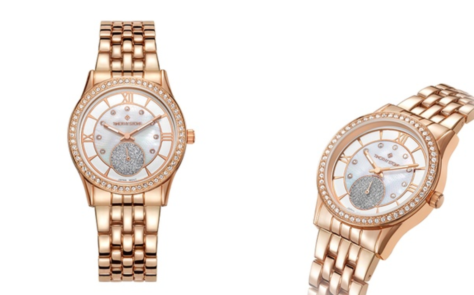 Chiếc đồng hồ hiệu Timothy Stone được gắn 69 viên đá pha lê của Swarovski® có thể đeo ban ngày hay ban đêm đều tôn thêm vẻ lộng lẫy sang trọng của chủ nhân.