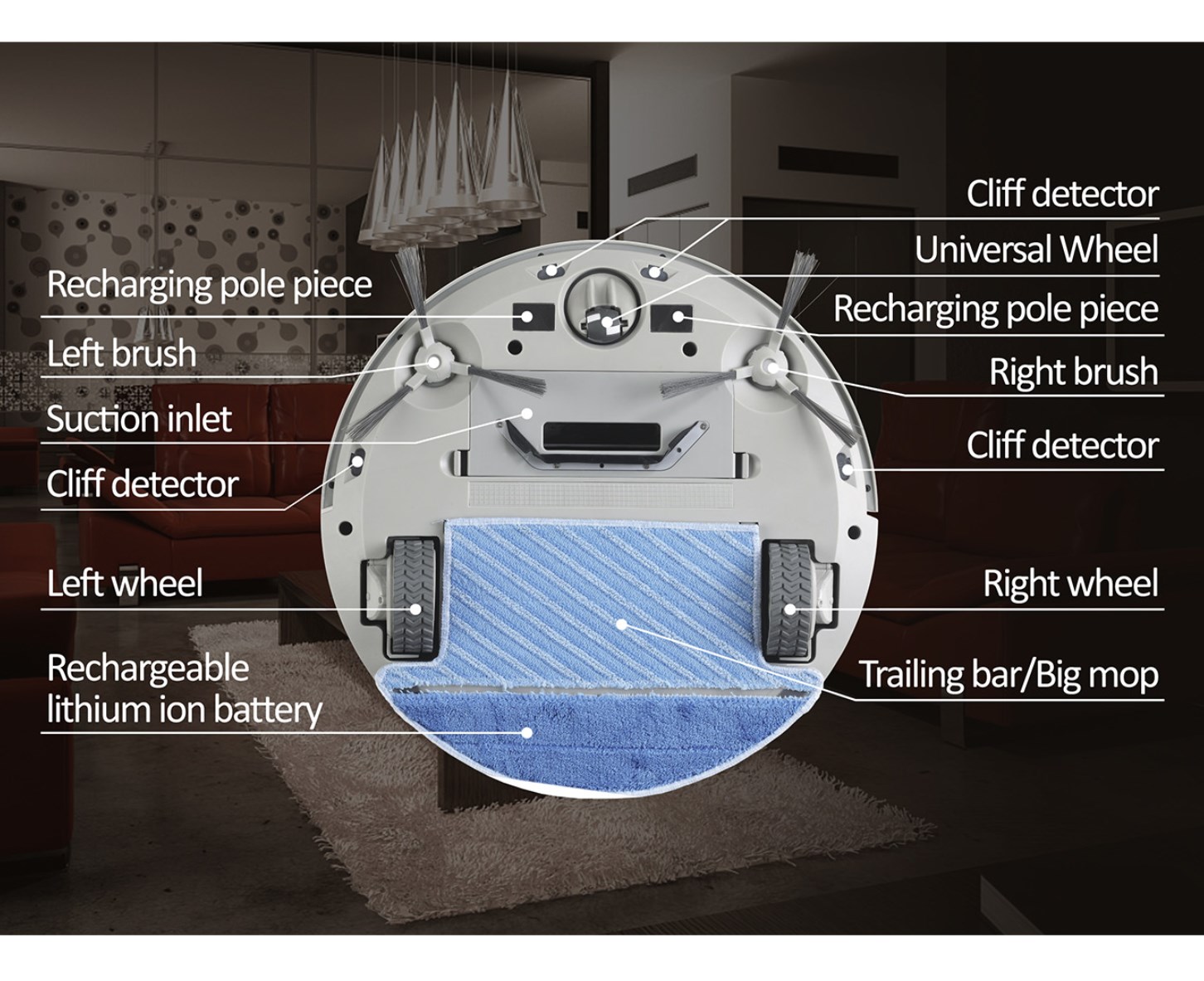 Robot hoạt động tốt trên các loại mặt sàn khác nhau nên phù hợp với mọi gia đình. Bình chứa bụi có dung tích 900 ml, bình chứa nước có dung tích 600 ml, cho phép làm sạch hiệu quả diện tích 180-200 mét vuông với mỗi lần thay khăn lau.