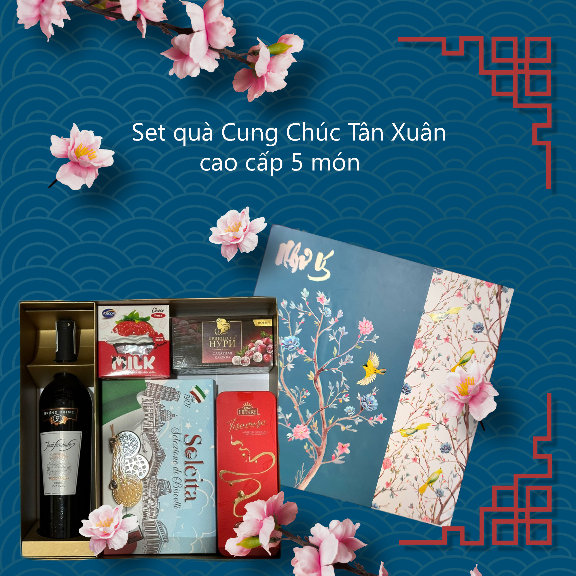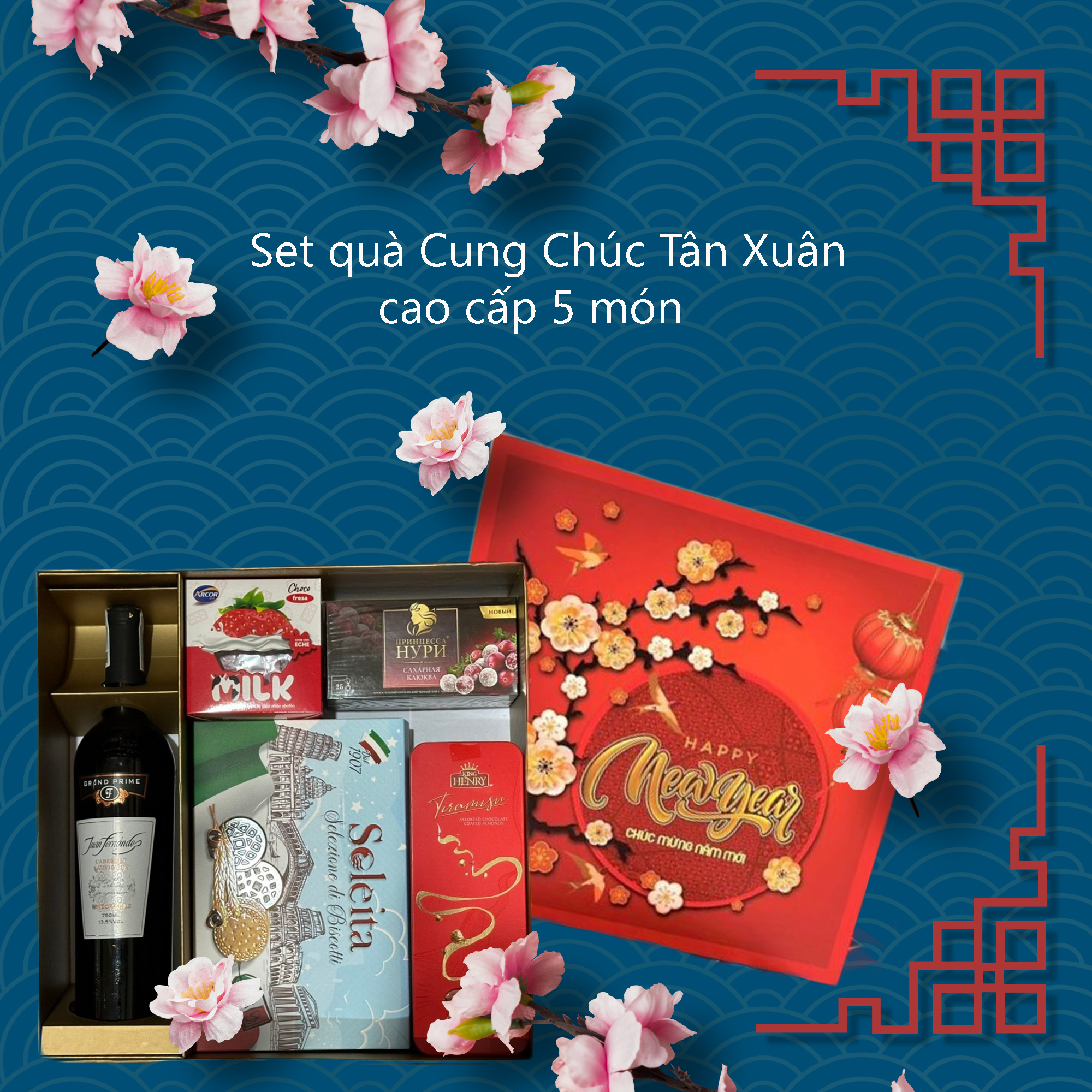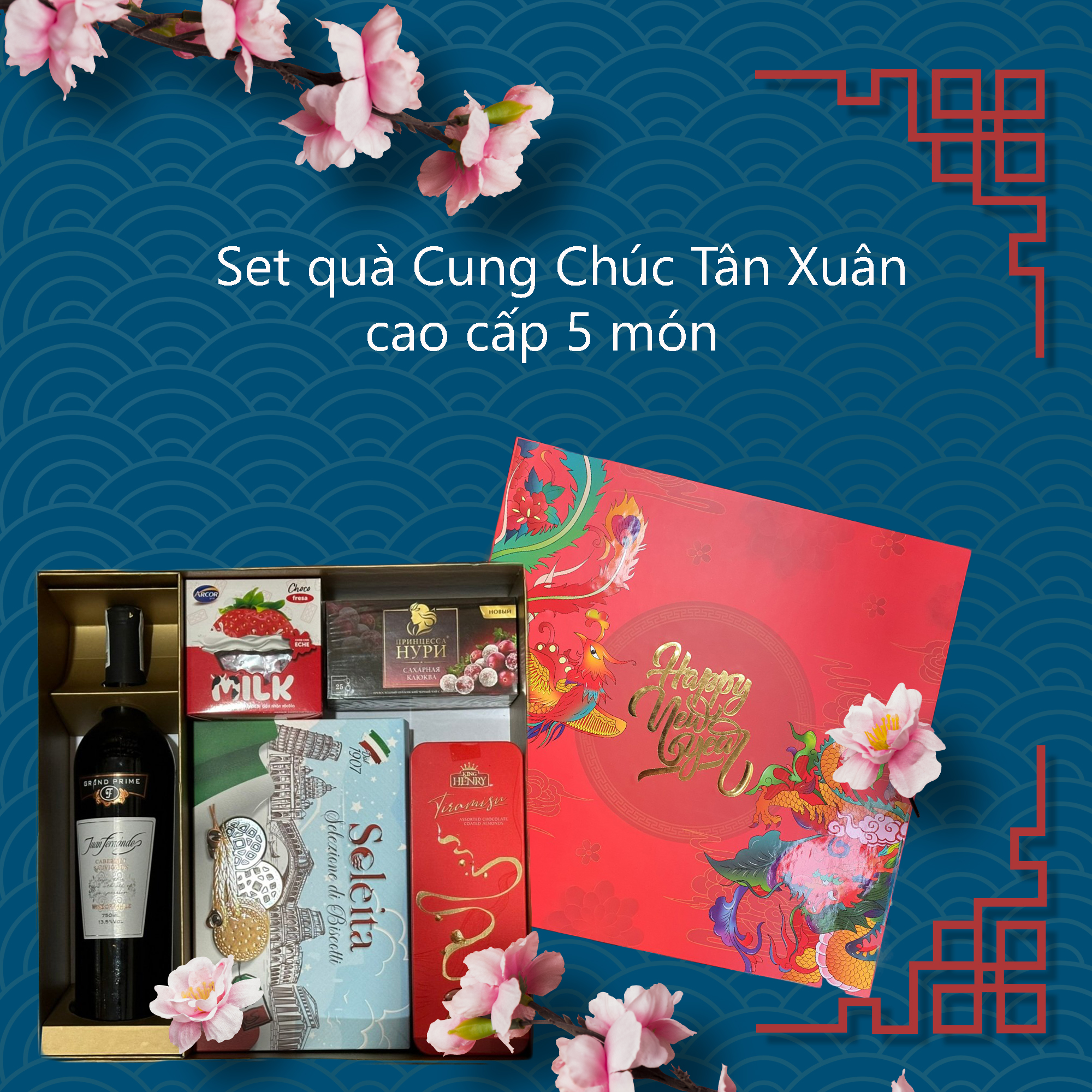 Set quà Cung Chúc Tân Xuân cao cấp 5 món gồm có: