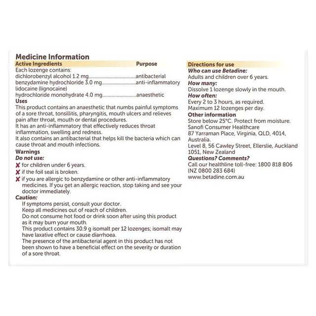 Viên ngậm gây tê Betadine được khuyến nghị để làm giảm các triệu chứng liên quan đến đau họng. Giảm viêm họng, giảm đau để làm giảm nhanh các triệu chứng đau họng hiệu quả và giúp tiêu diệt vi khuẩn có thể gây đau họng.