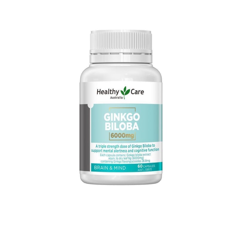 Healthy Care Ginkgo Biloba 6000mg – Bổ não hàm lượng cao 6000mg (60 viên): là sản phẩm chứa hàm lượng cao nhất hiện nay giúp khắc phục mọi vấn đề về suy giảm trí nhớ, đau đầu, mất tập trung, chóng mặt ù tai, đau mỏi vai gáy,… Với thành phần chính được điều chế từ cây bạch quả chứa nhiều dưỡng chất cần thiết cho tế bào não, viên uống bổ não Healthy Care 6000mg giúp tăng tuần hoàn máu, cải thiện và dự phòng tình trạng suy giảm trí nhớ, kém tập trung, tăng cường chức năng não bộ đồng thời phòng chống các bệnh lý về tim mạch, huyết áp.