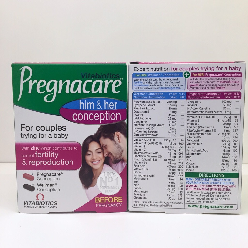 Dưới sự tác động của môi trường sống, tâm lý con người, tỷ lệ hiếm muộn ở các cặp vợ chồng trẻ ngày càng tăng cao, khiến cho cuộc sống hôn nhân và gia đình bị ảnh hưởng. Viên uống tăng cường khả năng thụ thai Pregnacare him & her conception được nghiên cứu và bổ sung các thành phần chuyên biệt, giúp hỗ trợ tăng cường khả năng thụ thai cho các cặp vợ chồng gặp khó khăn trong việc sinh đẻ, phòng chống các bệnh lây nhiễm, thúc đẩy quá trình thụ thai và đảm bảo cho một phôi thai khỏe mạnh. Công dụng cụ thể của sản phẩm có thể kể đến như: