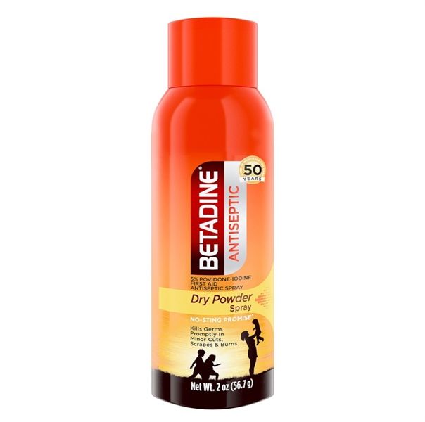 Xịt Bột Khô Khử Khuẩn Betadine Antiseptic 5% Povidone-Iodine First Aid Dry Powder Spray 56,7g